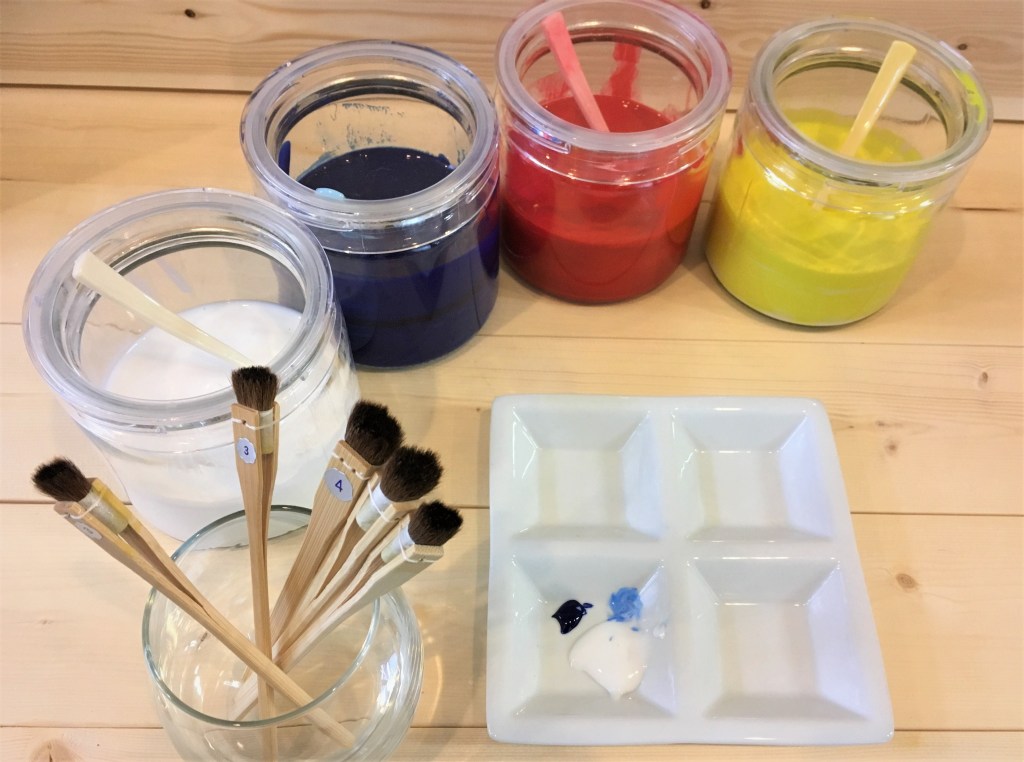 団体利用の場合、染める物はトートバッグ、巾着から1種類を指定して頂きます。