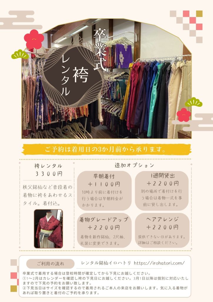 2024年3月に行われる卒業式での袴レンタルについてご案内します。