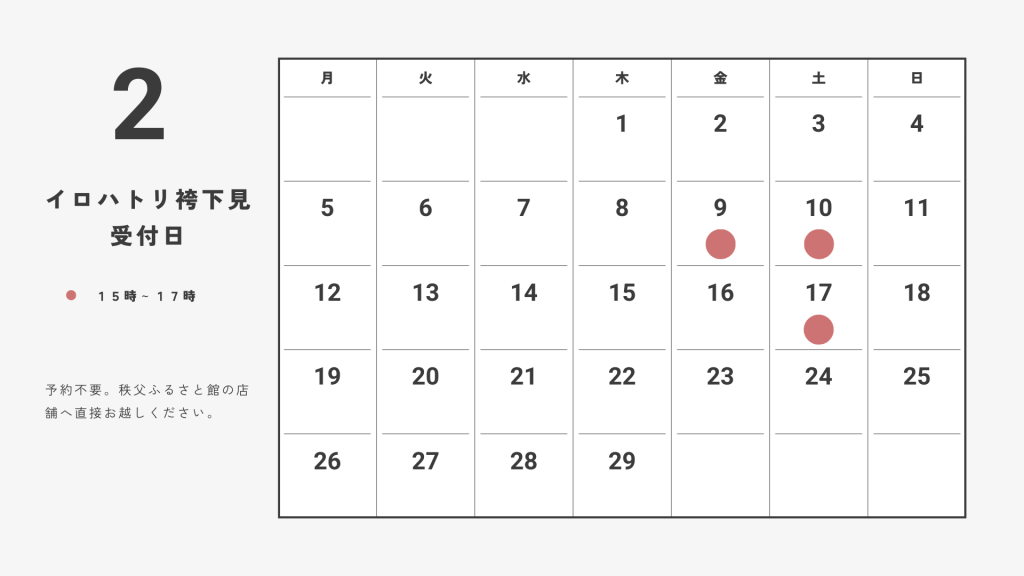 2024年2月の袴下見日は下記の通りです。