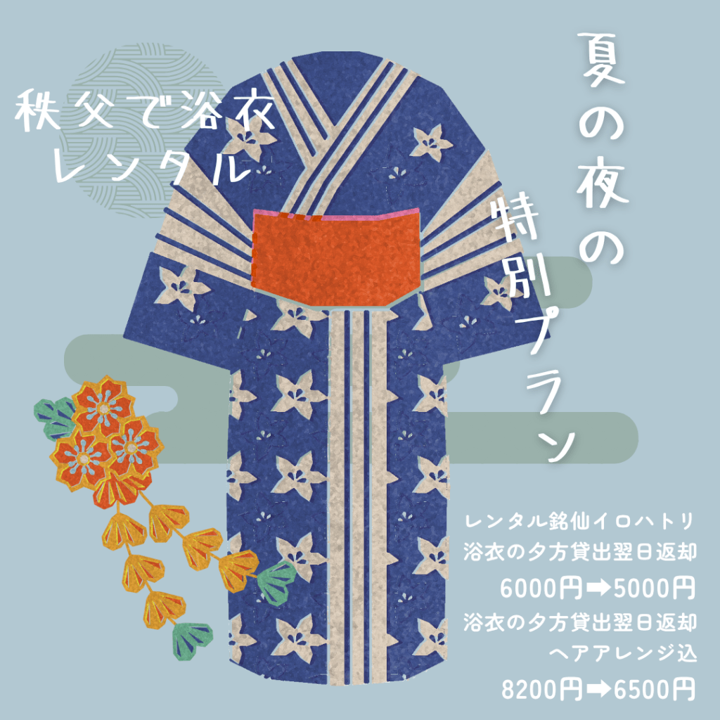 秩父の夏の夜を浴衣で楽しみたい方におすすめのプランになっています。